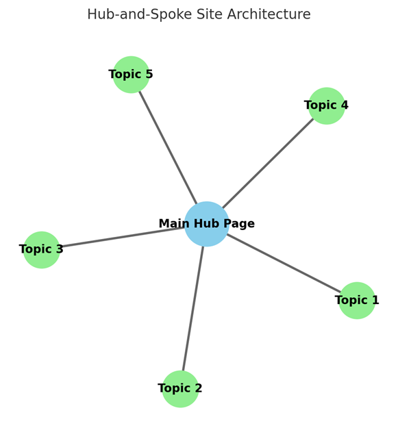 Think of your site like a city. Crawl depth is the number of streets a visitor has to walk before they reach something important. If it takes five turns and two back alleys, most people — and Google — give up. A flat structure, where key pages are just a couple of clicks from the homepage, works way better than a deep maze. That’s where the hub-and-spoke model shines: one main hub page (the hub) connects out to smaller, related ones (the spokes).